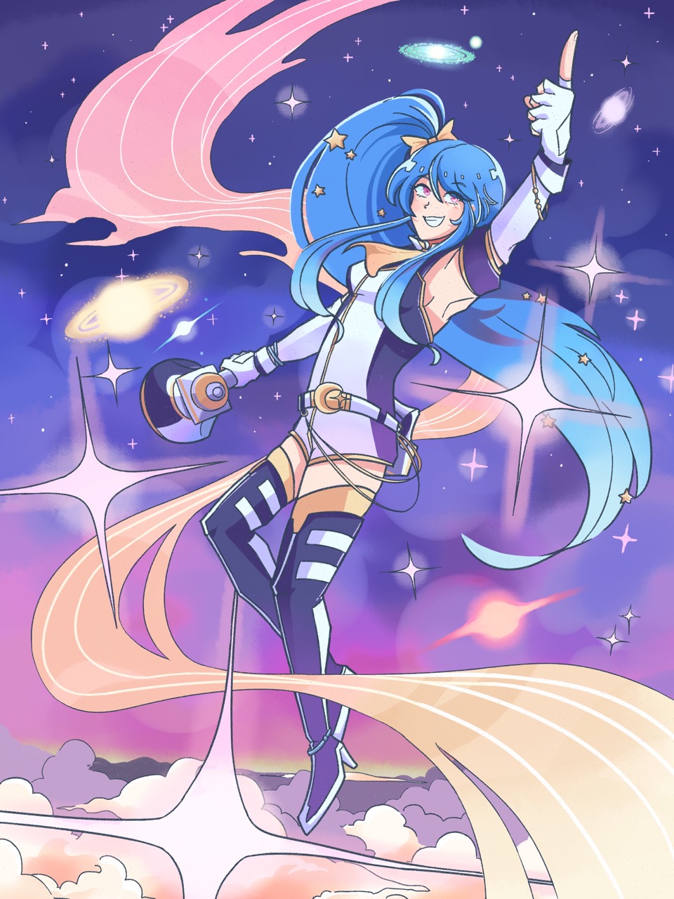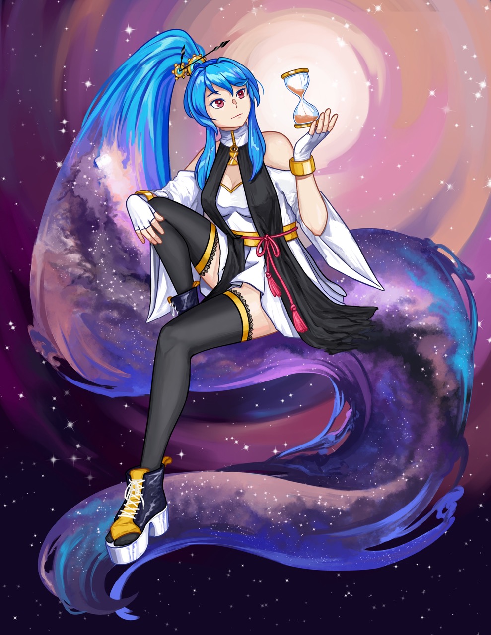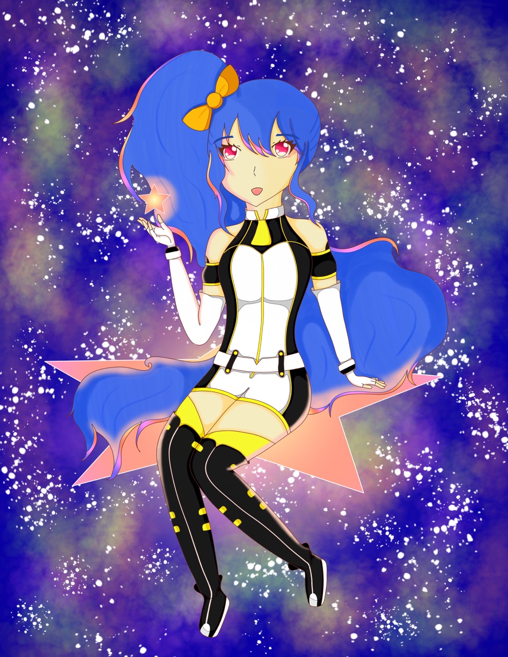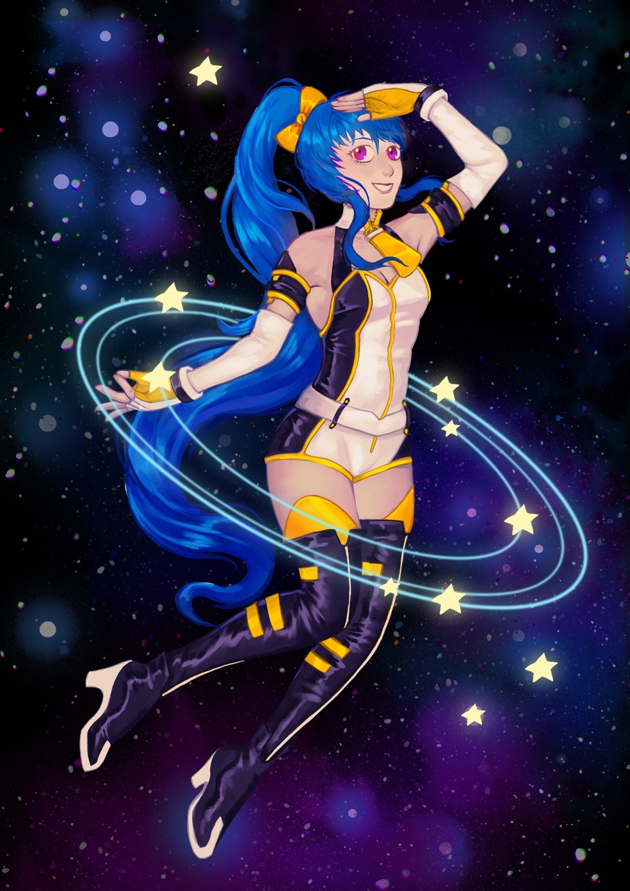 I wanted to draw Senmei with a galaxy/celestial theme! I especially liked the shape of her hair, it was very fun to draw 🙂