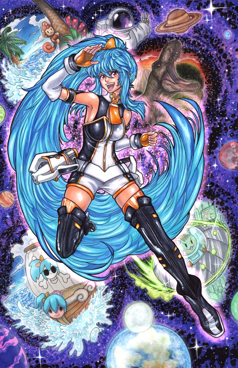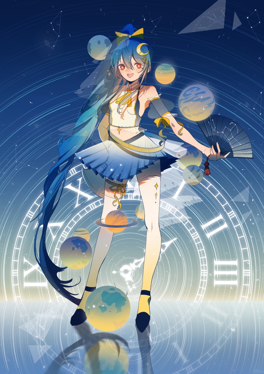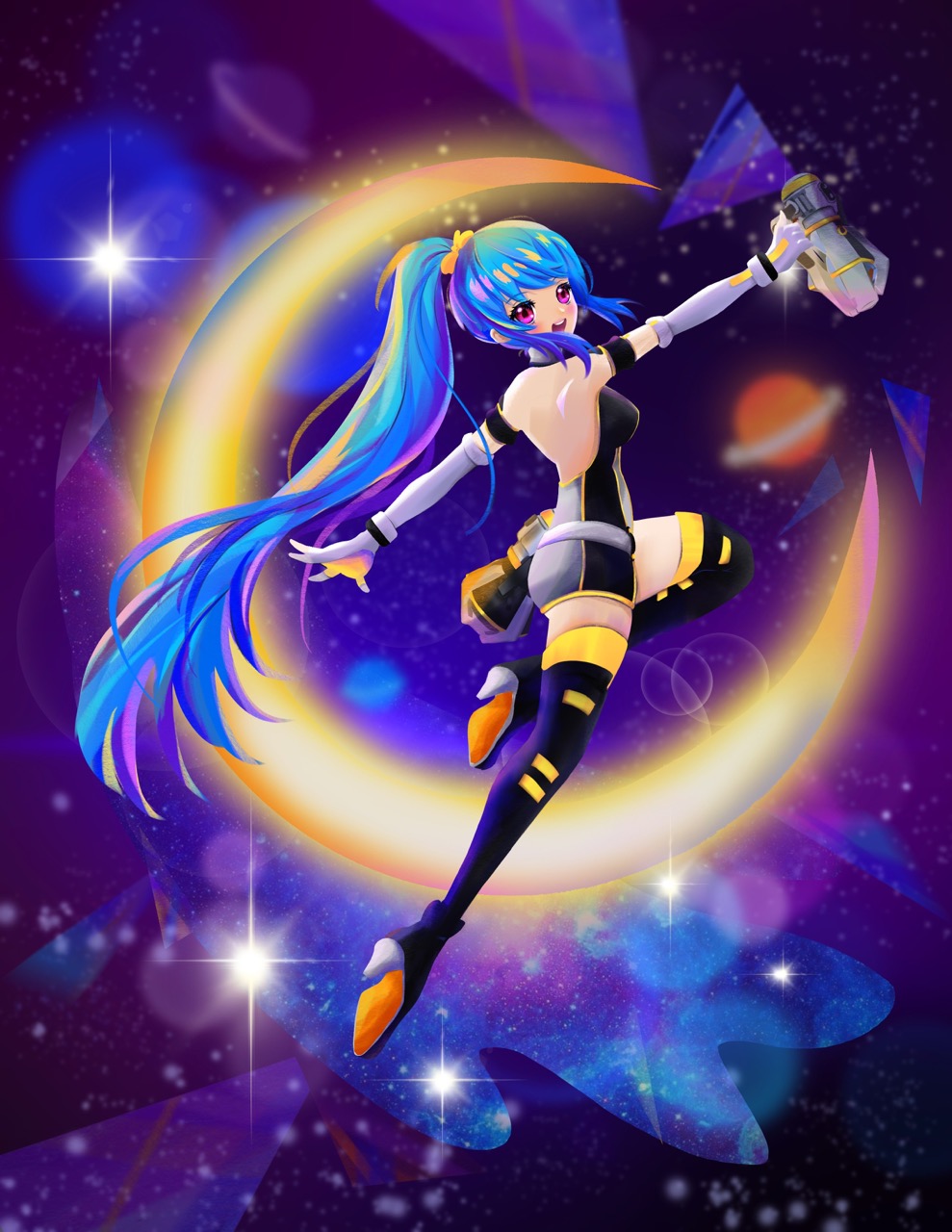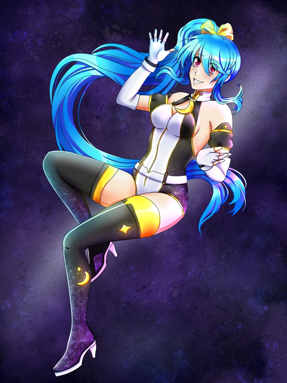 I wanted to draw Senmei with a galaxy/celestial theme! I especially liked the shape of her hair, it was very fun to draw 🙂