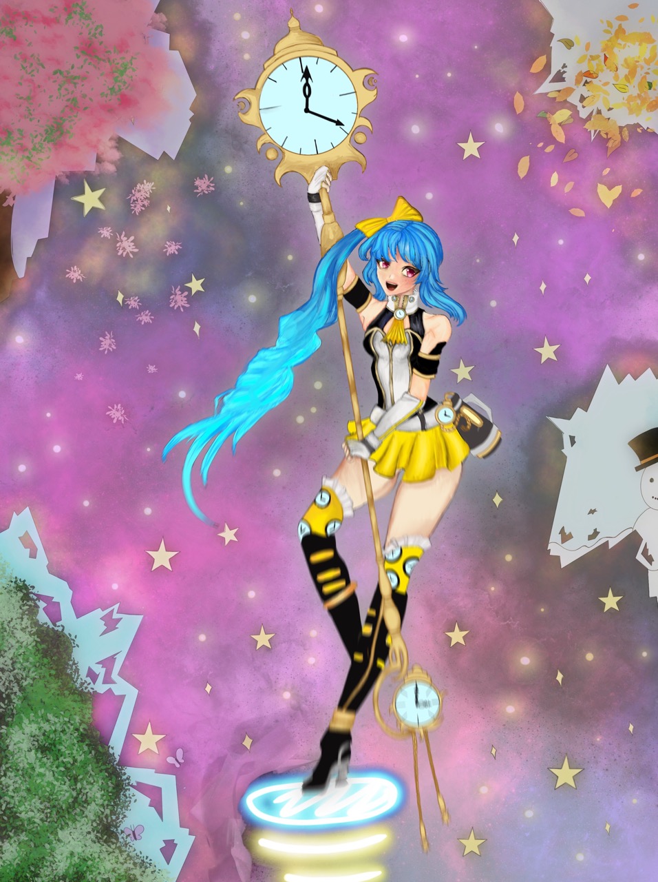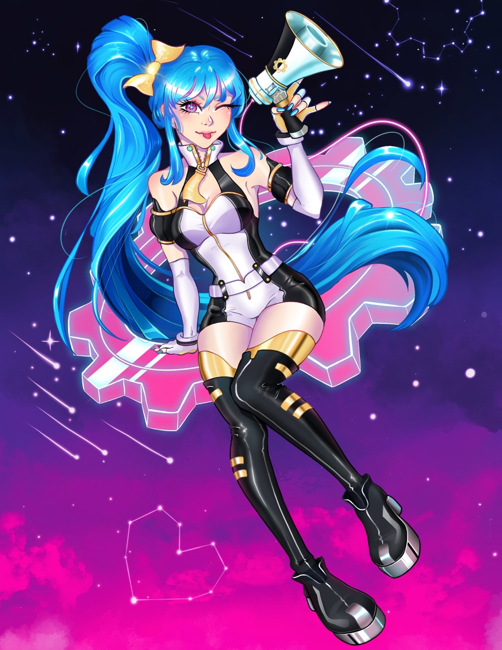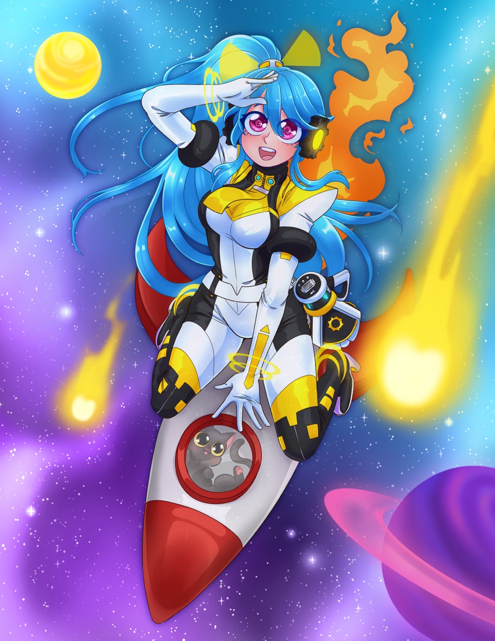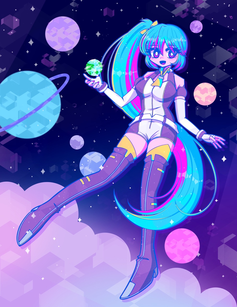 I wanted to draw Senmei with a galaxy/celestial theme! I especially liked the shape of her hair, it was very fun to draw 🙂