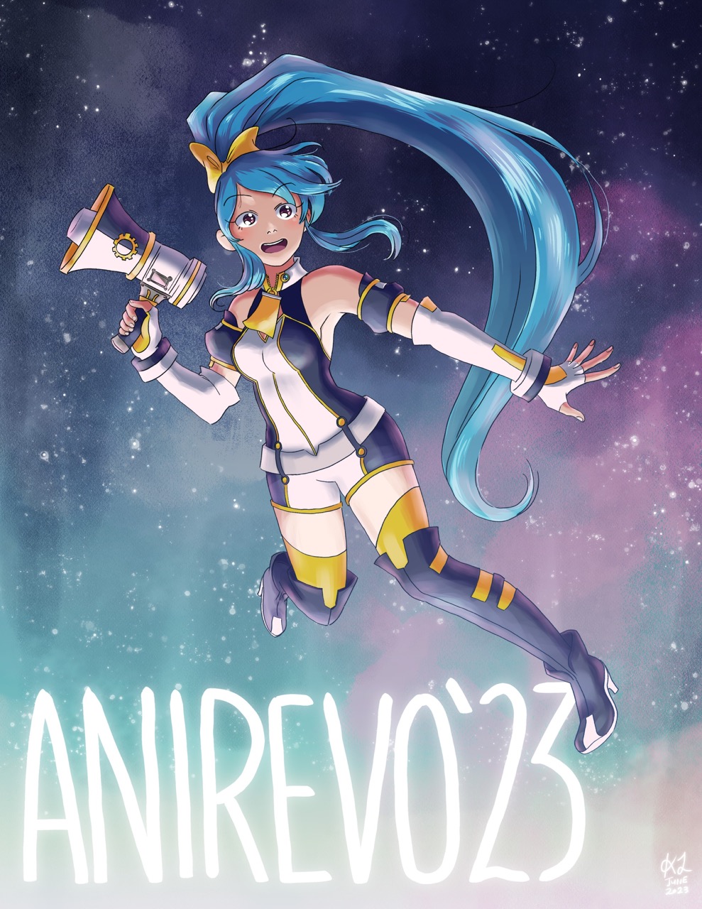 I had a few revisions at first costume wise and background wise but decided to stick with this version in the end. Thank you for looking at my art, I hope everyone has an amazing summer Anirevo!